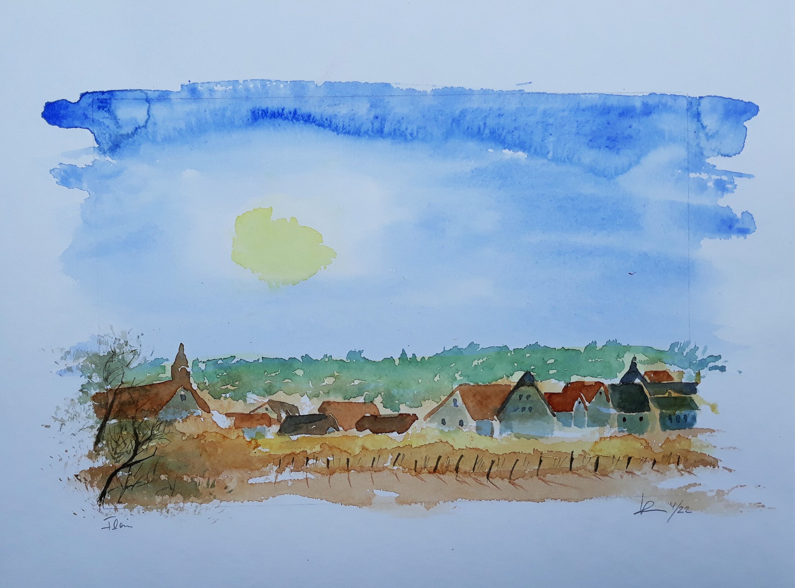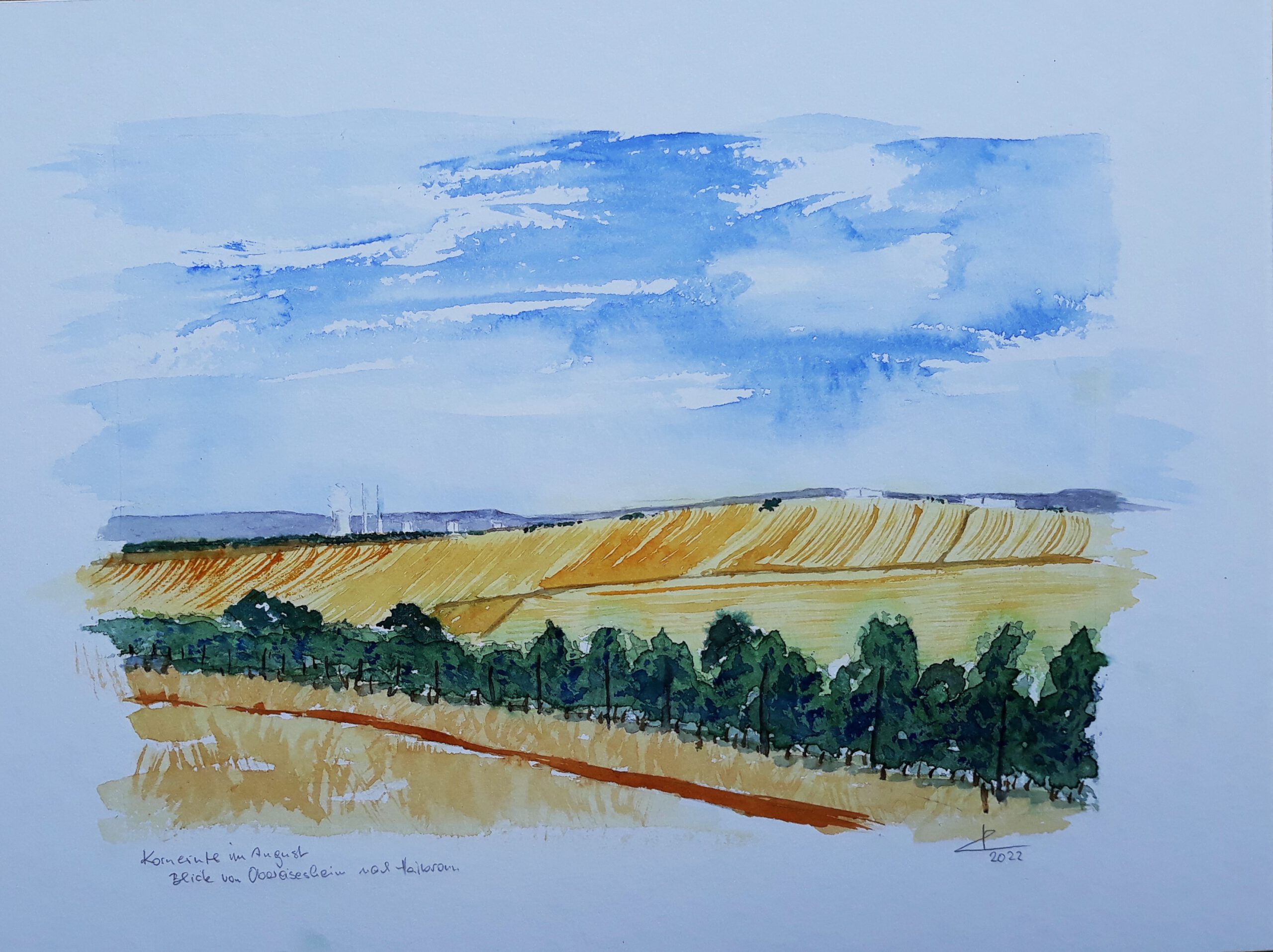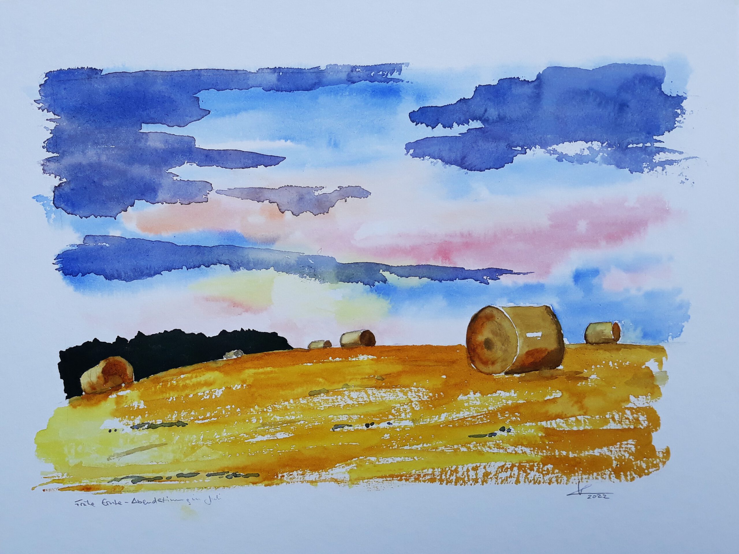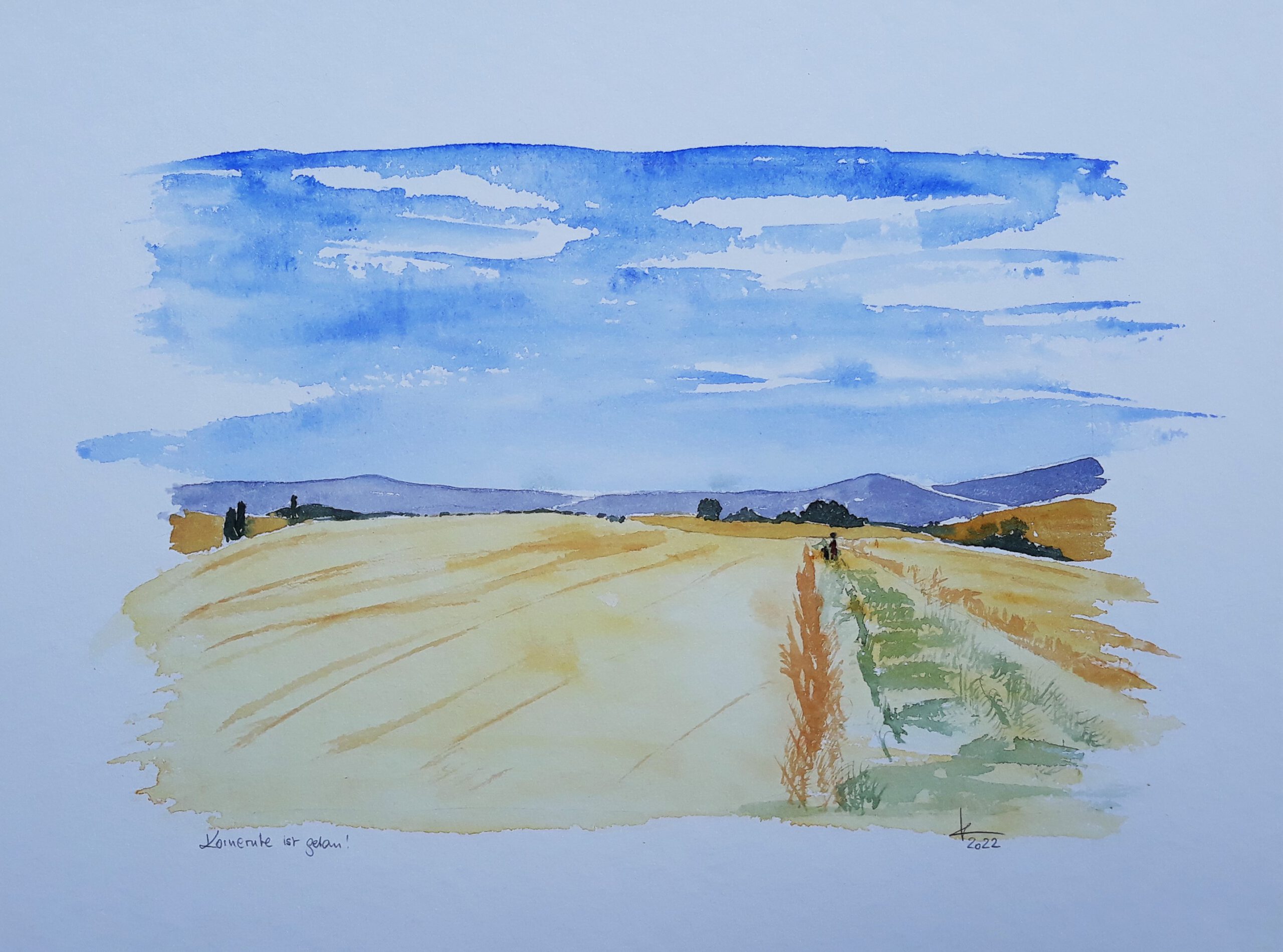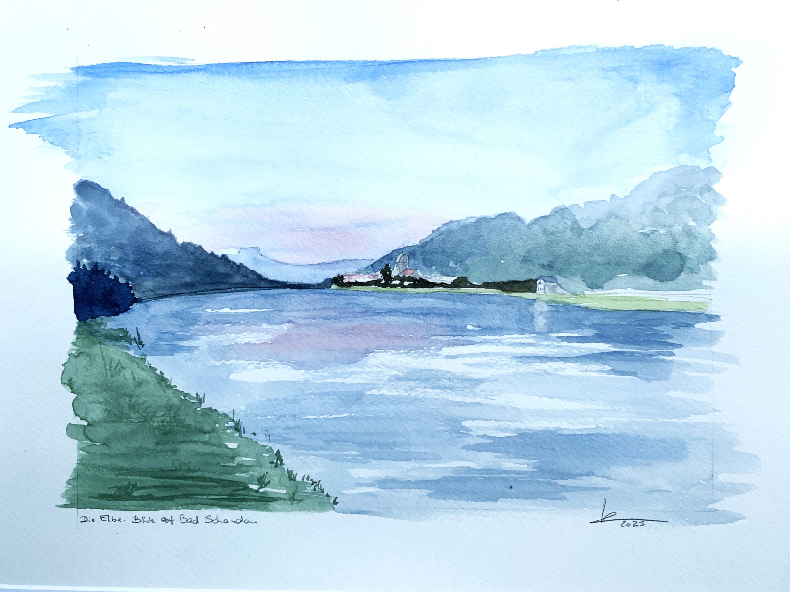 Aber immer mal wieder entstand ein Bild. Meist war es Öl auf Leinwand. Heute bevorzuge ich Aquarell und Papier. Nicht, weil es eine kleinere Fläche ist, sondern, weil das Wasser mit der Farbe immer für Überraschungen sorgt.“ – Katja Körner