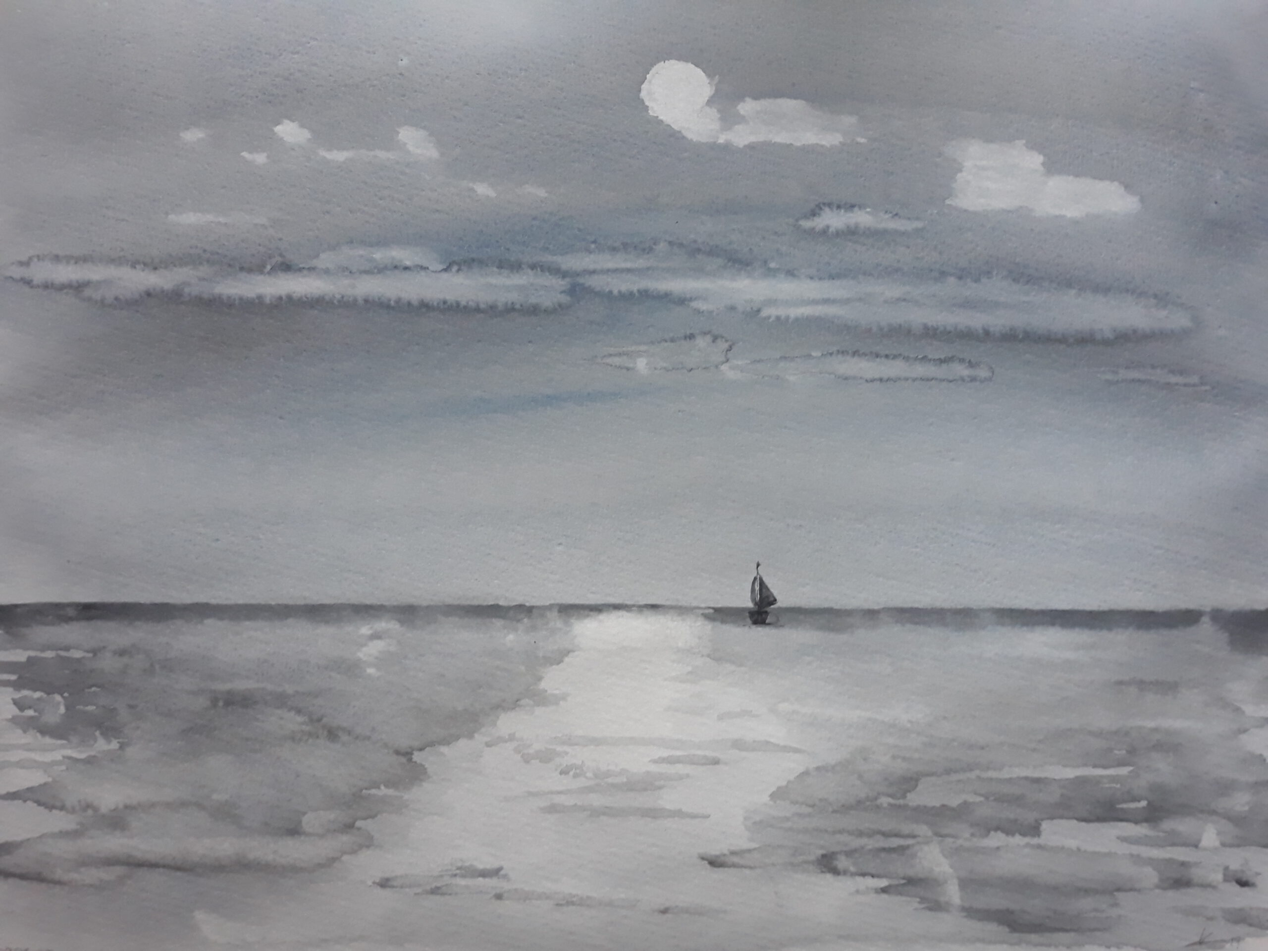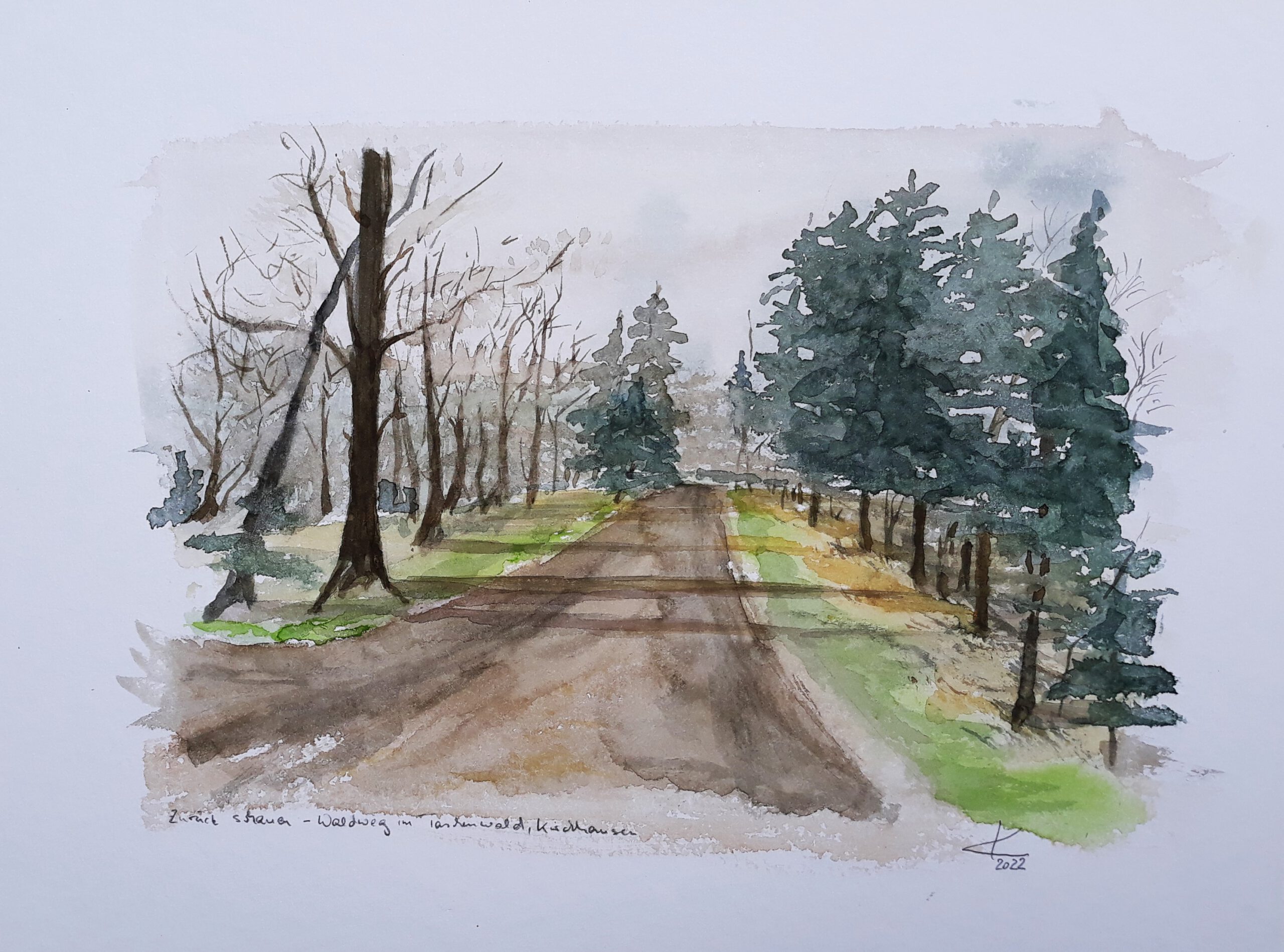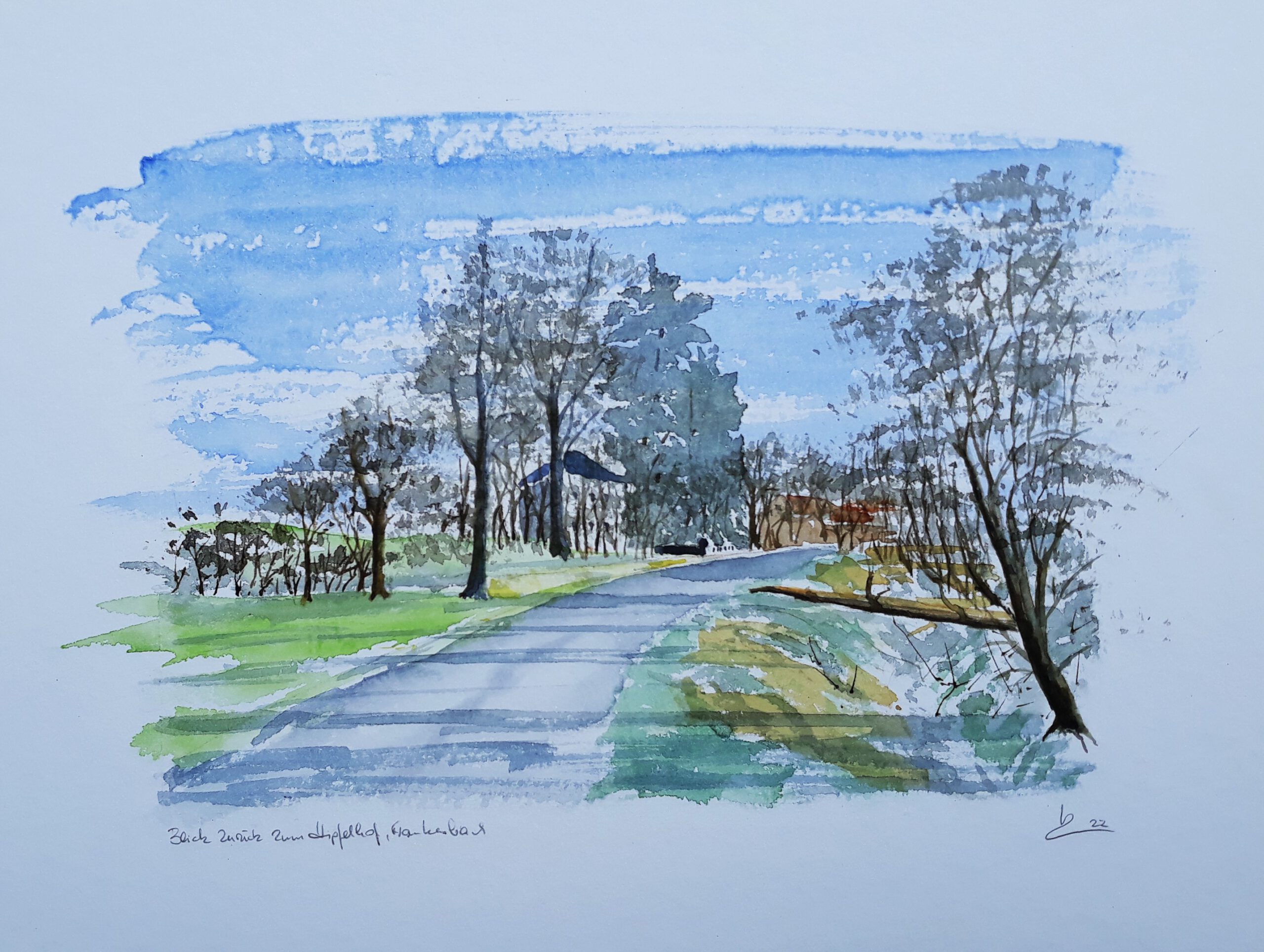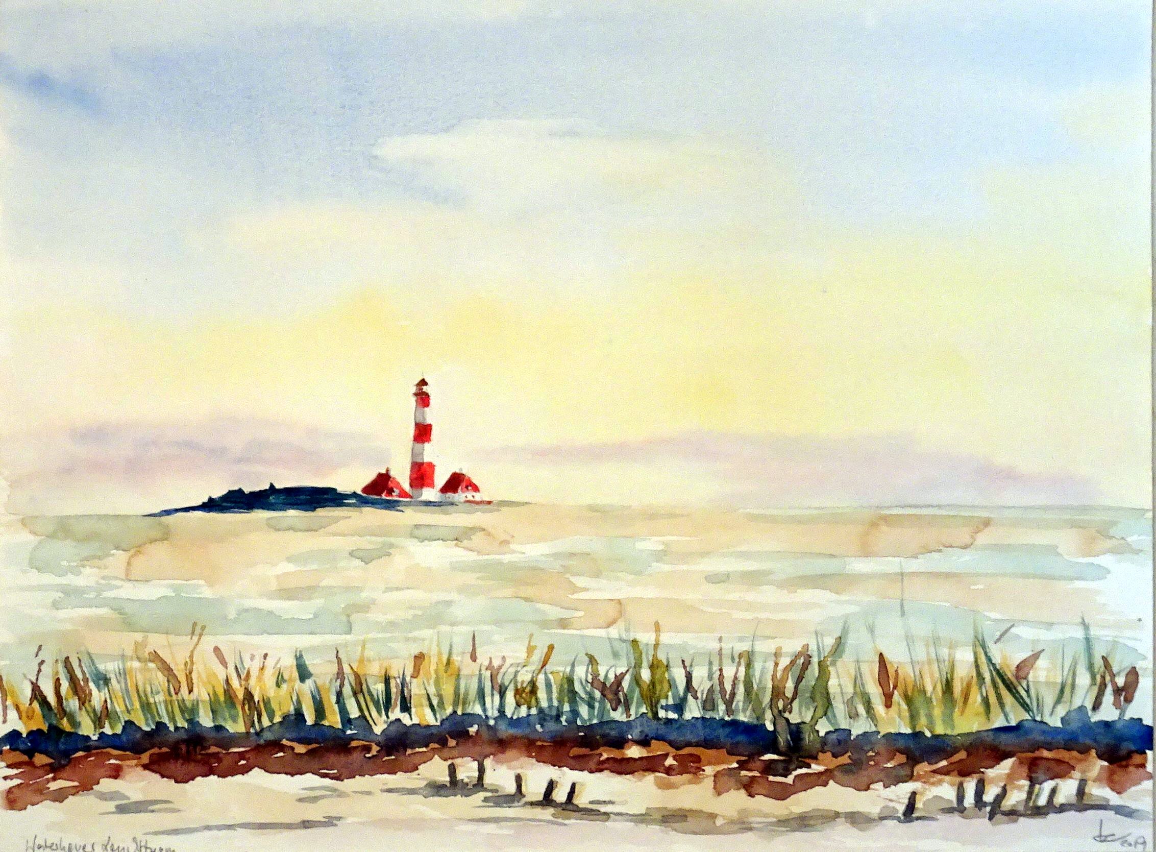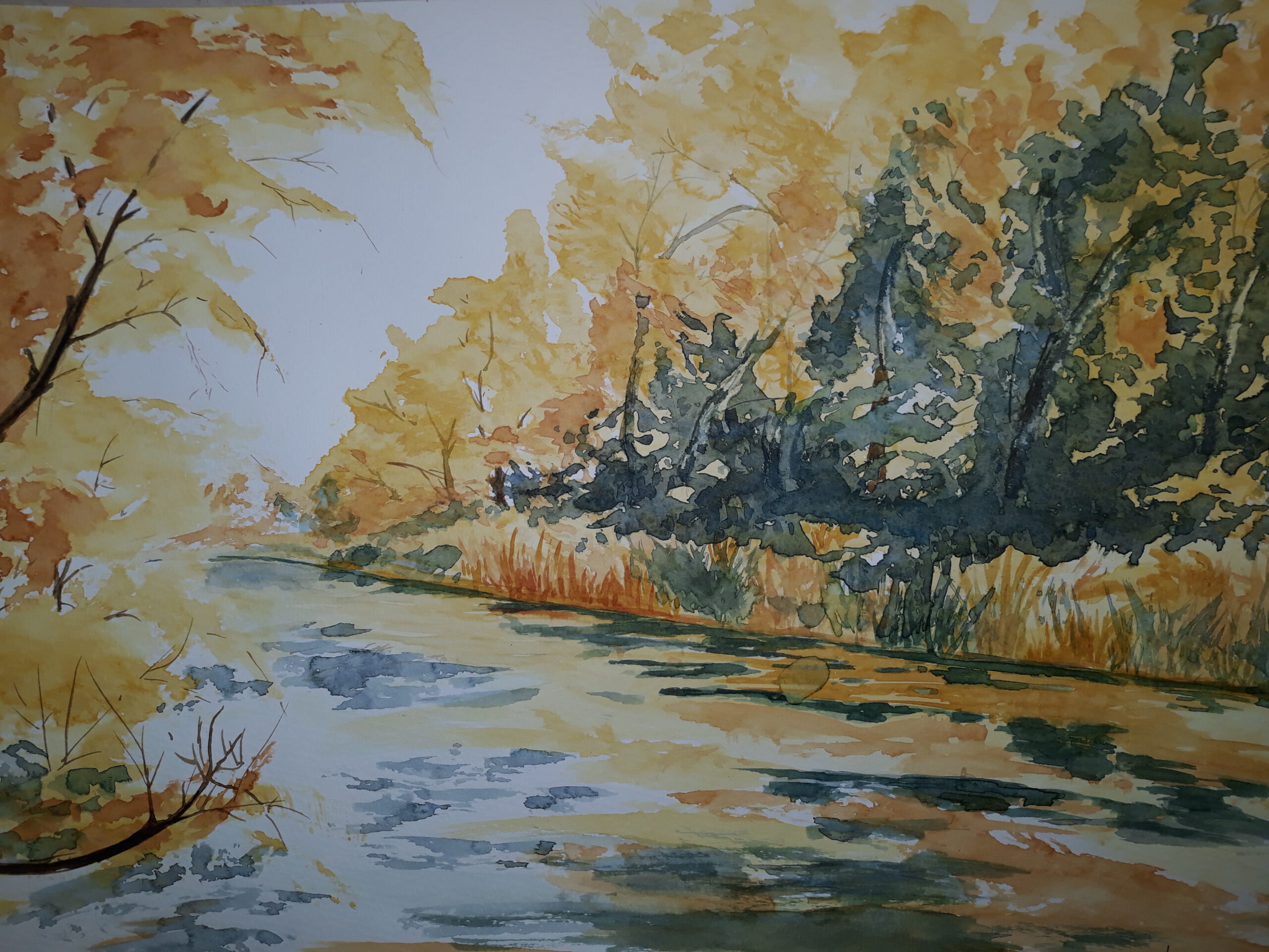 Aber immer mal wieder entstand ein Bild. Meist war es Öl auf Leinwand. Heute bevorzuge ich Aquarell und Papier. Nicht, weil es eine kleinere Fläche ist, sondern, weil das Wasser mit der Farbe immer für Überraschungen sorgt.“ – Katja Körner
