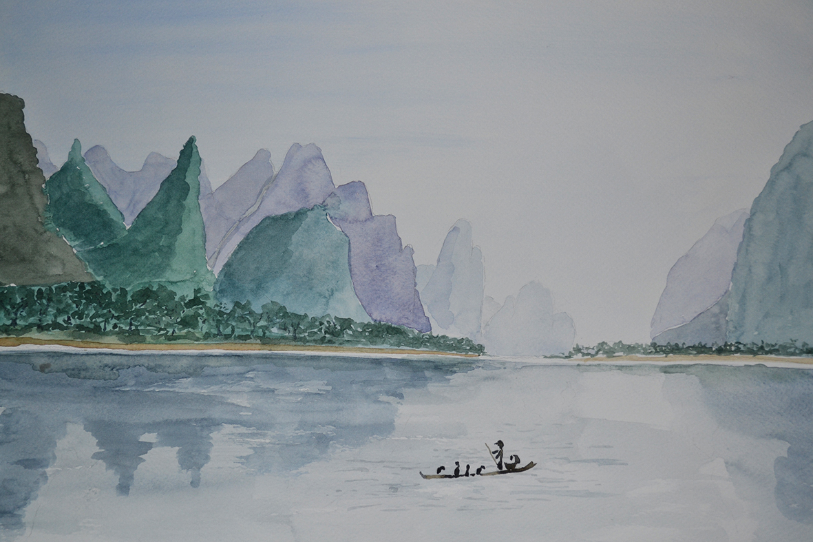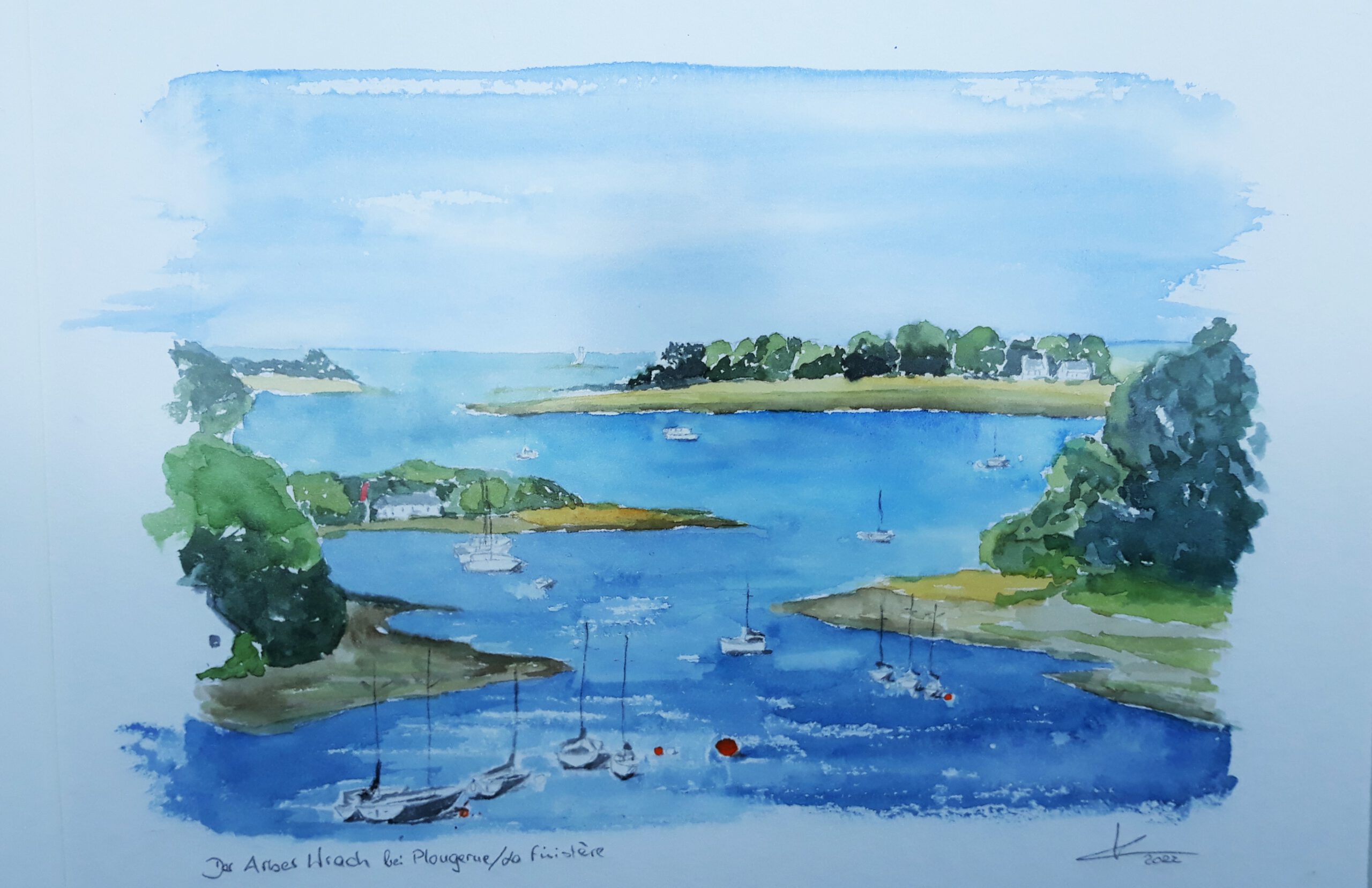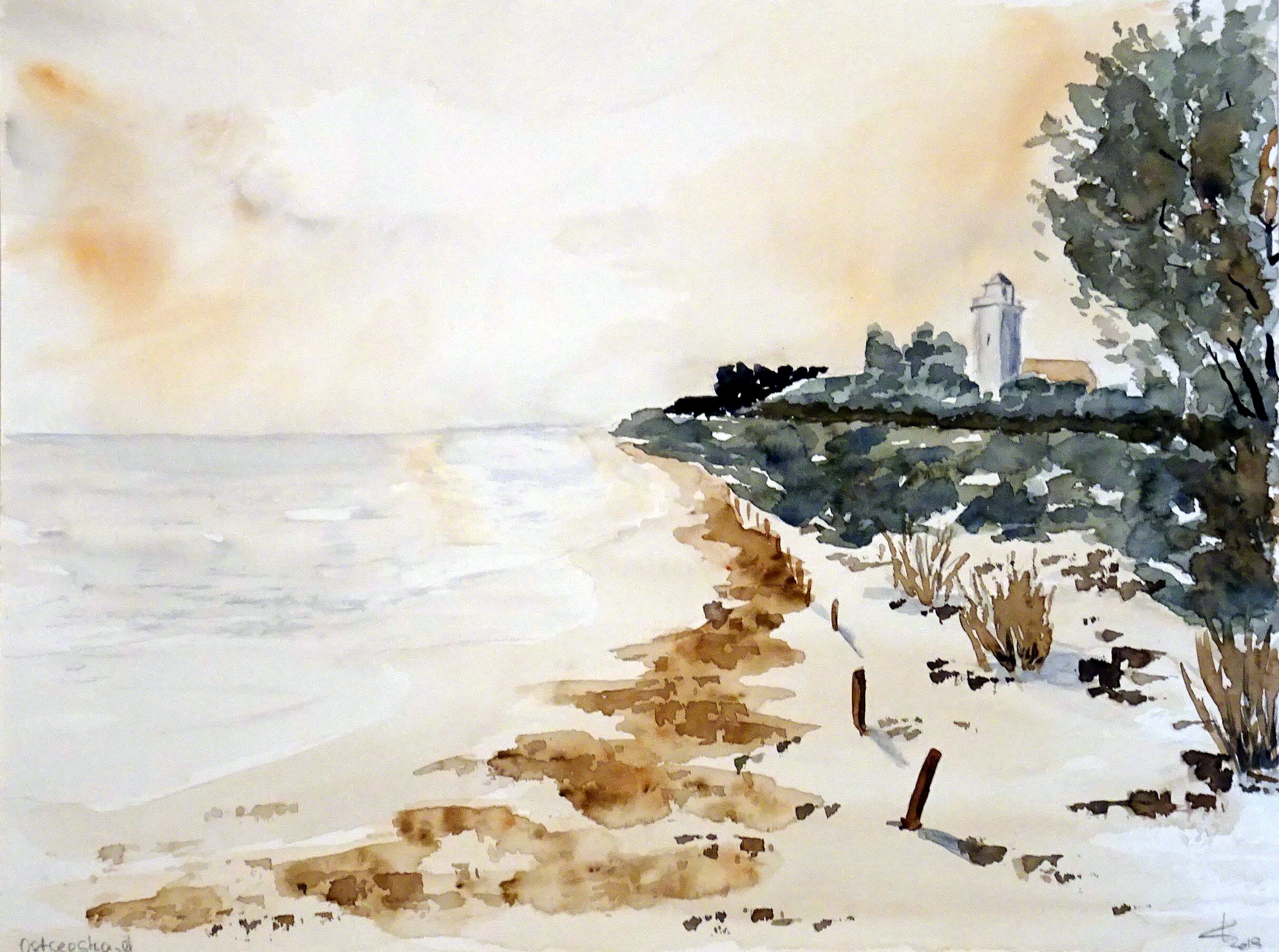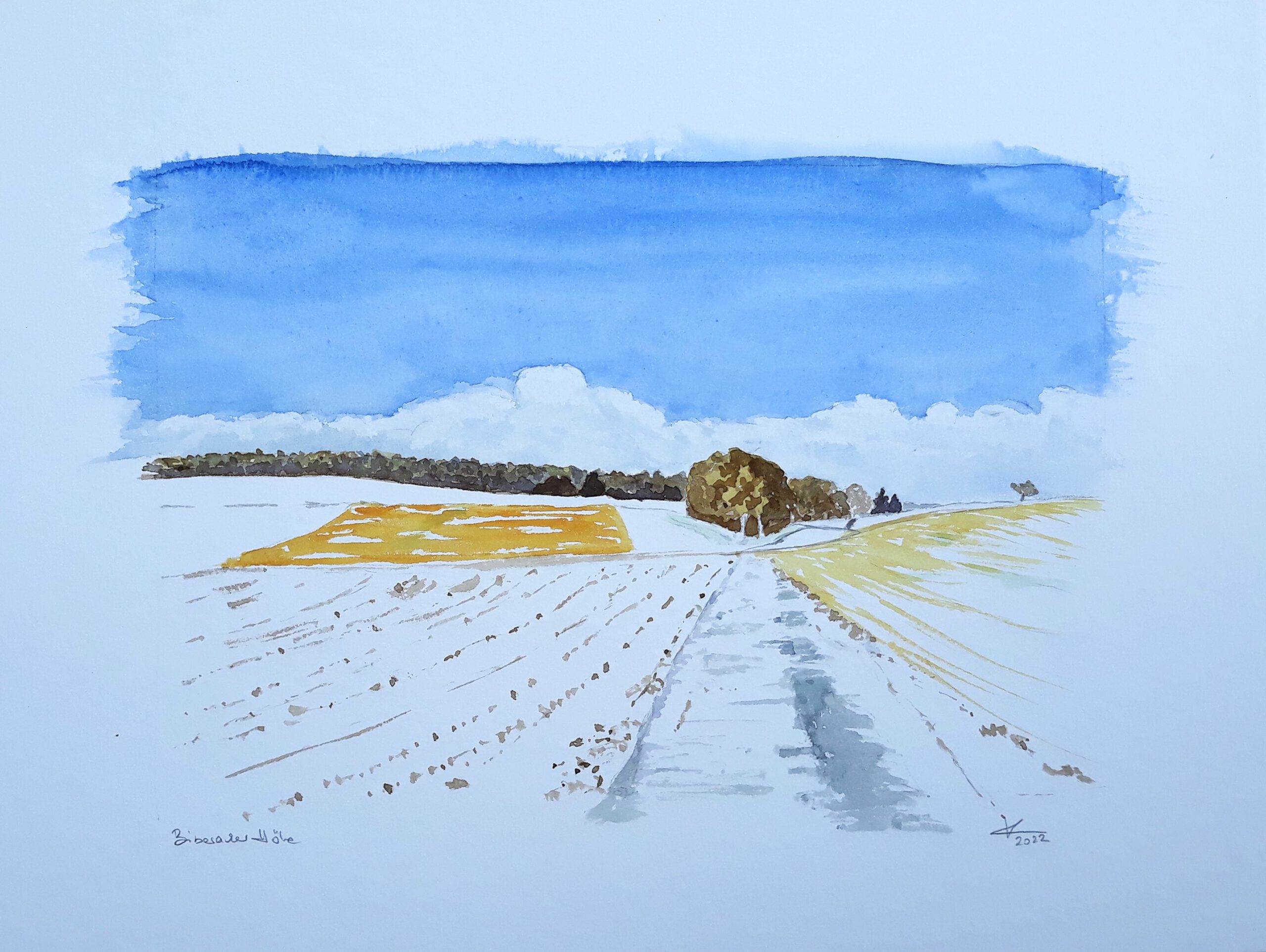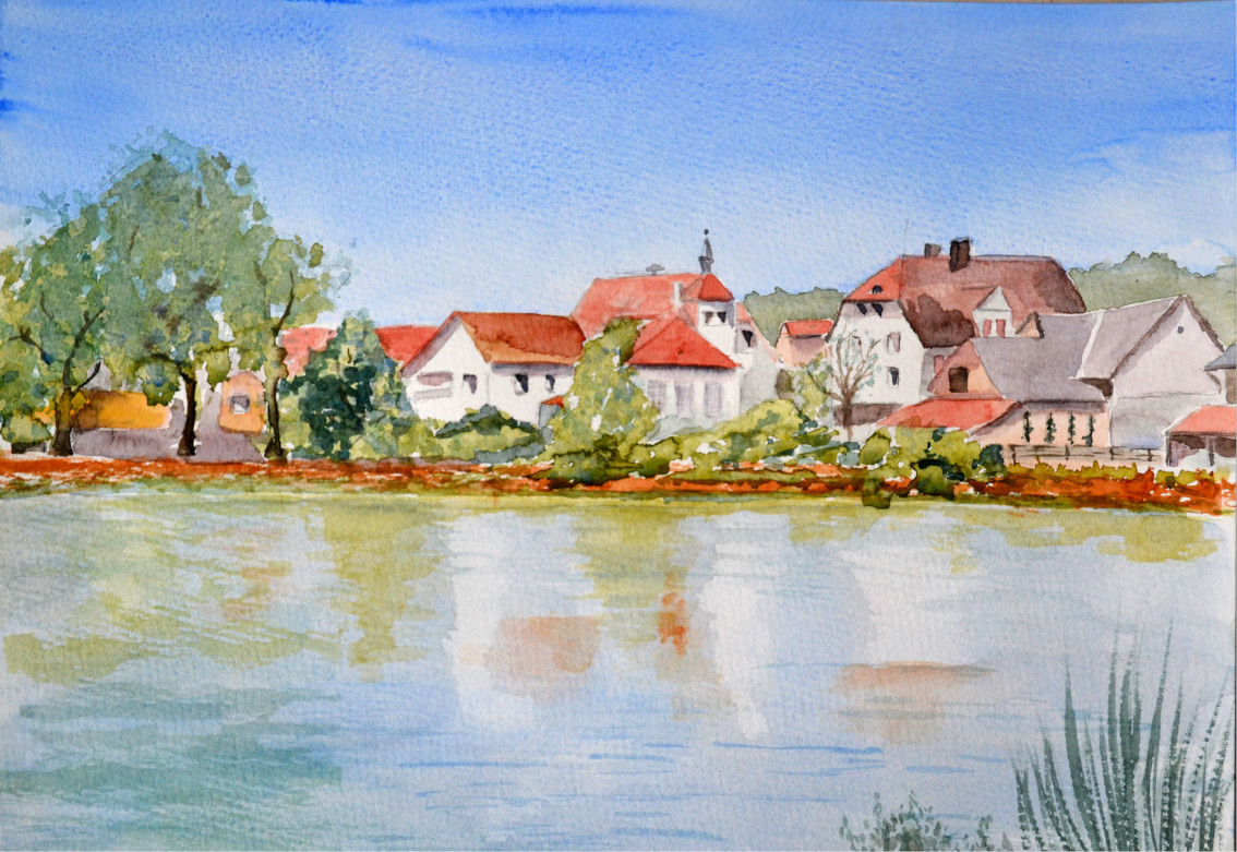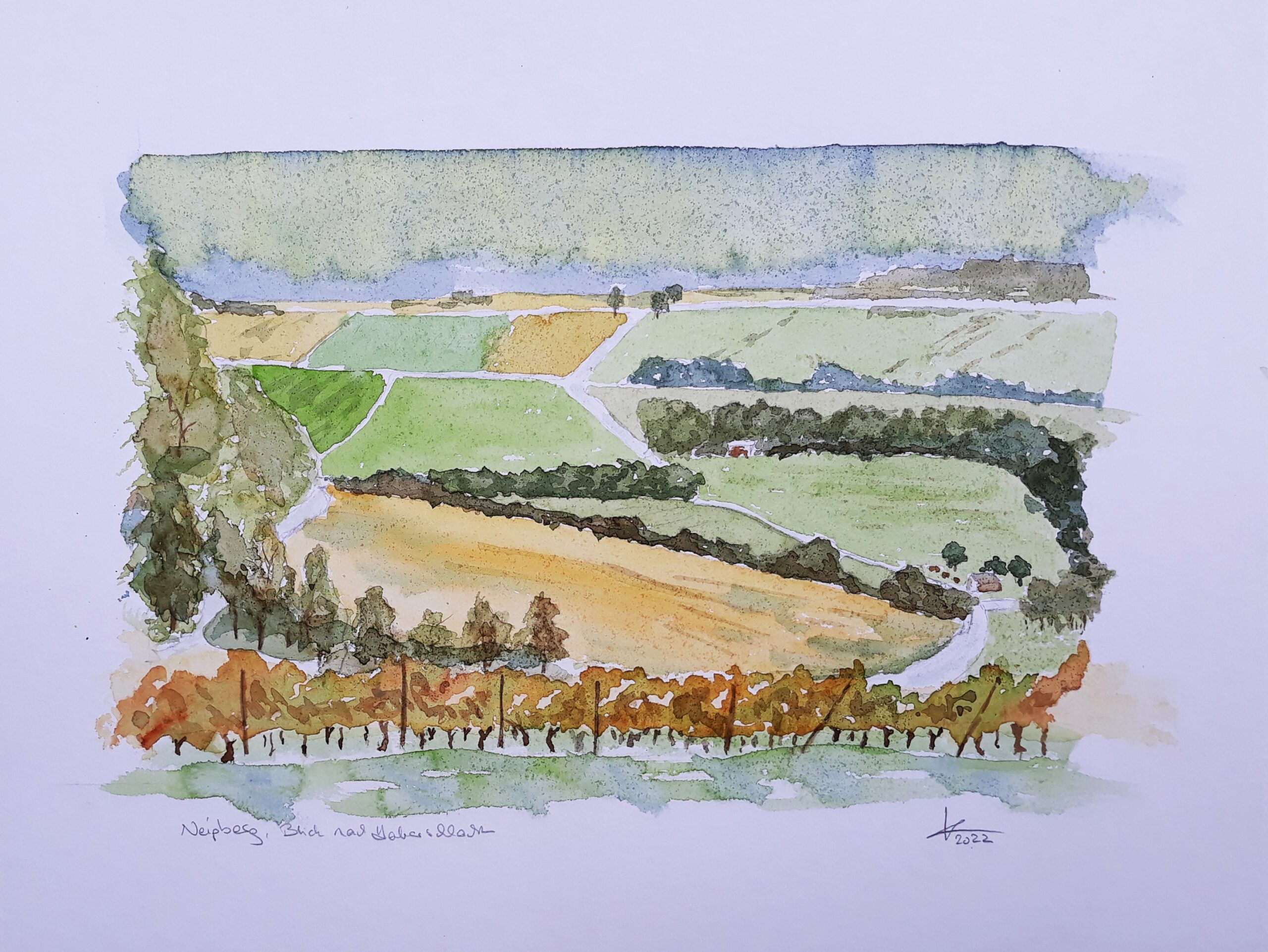 Aber immer mal wieder entstand ein Bild. Meist war es Öl auf Leinwand. Heute bevorzuge ich Aquarell und Papier. Nicht, weil es eine kleinere Fläche ist, sondern, weil das Wasser mit der Farbe immer für Überraschungen sorgt.“ – Katja Körner