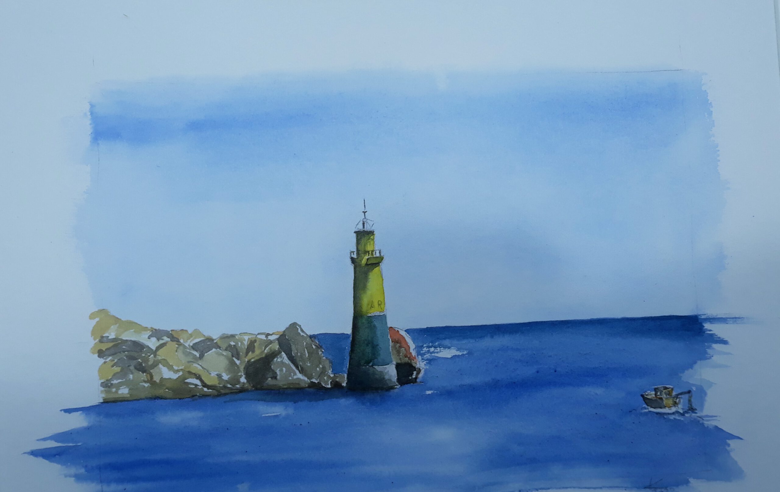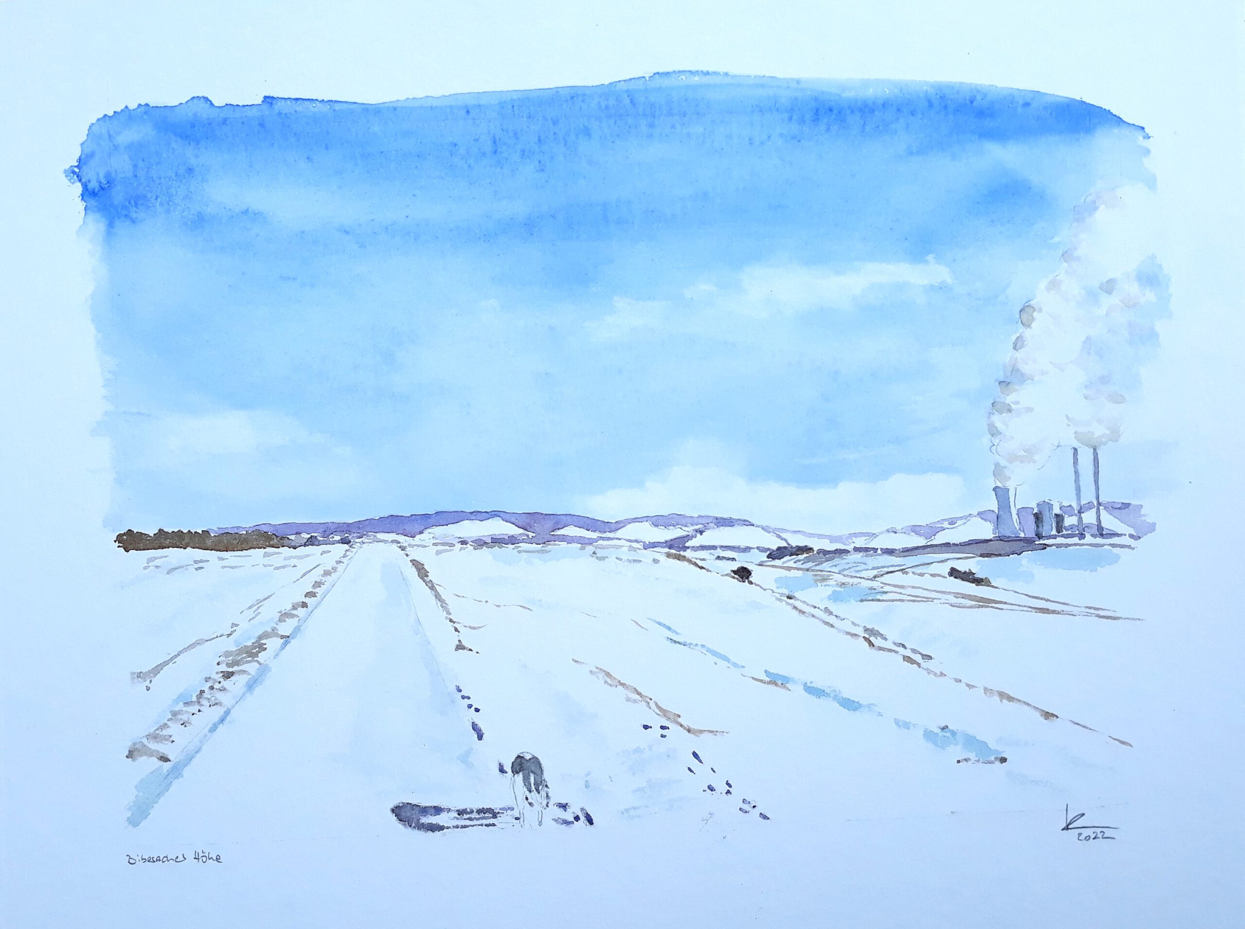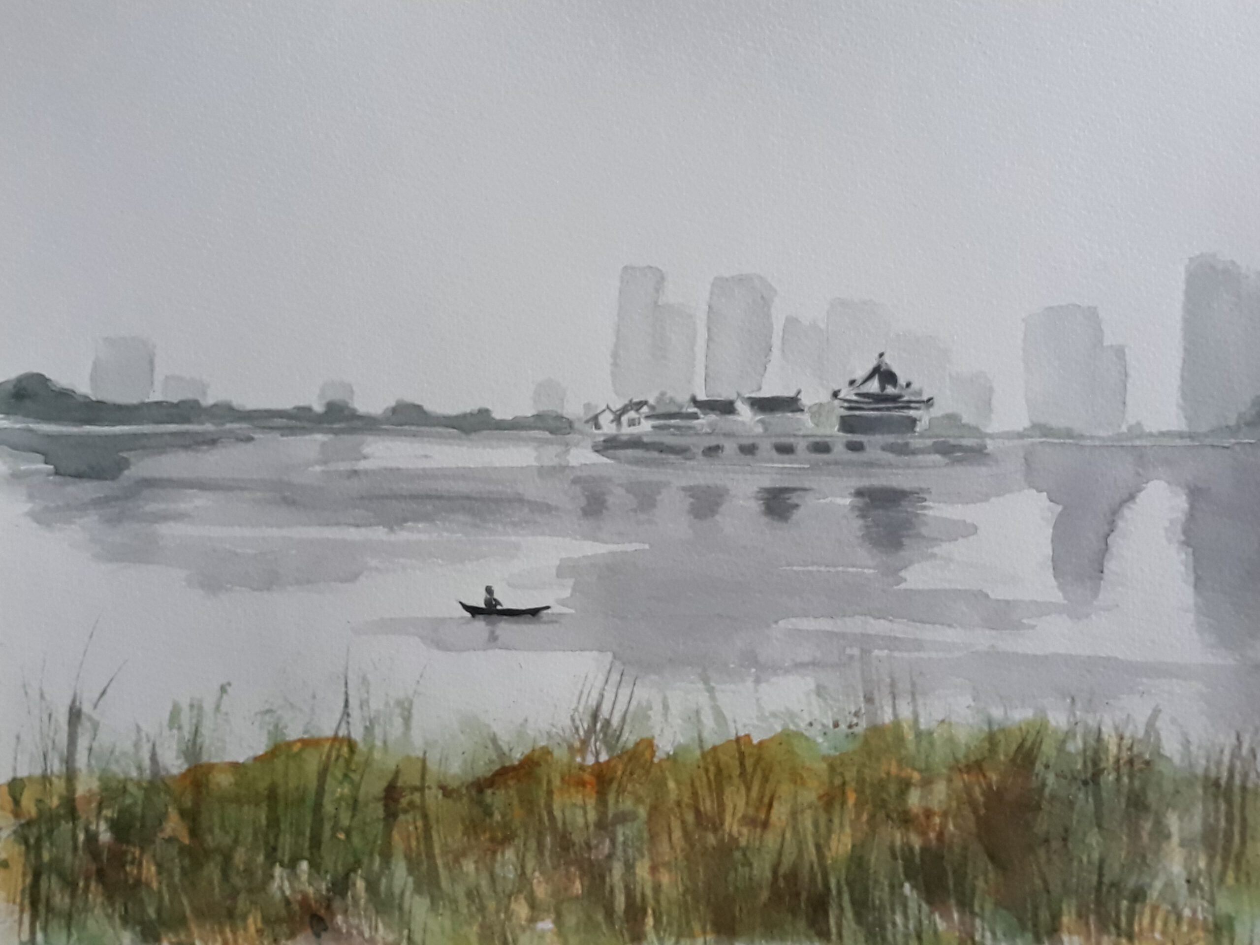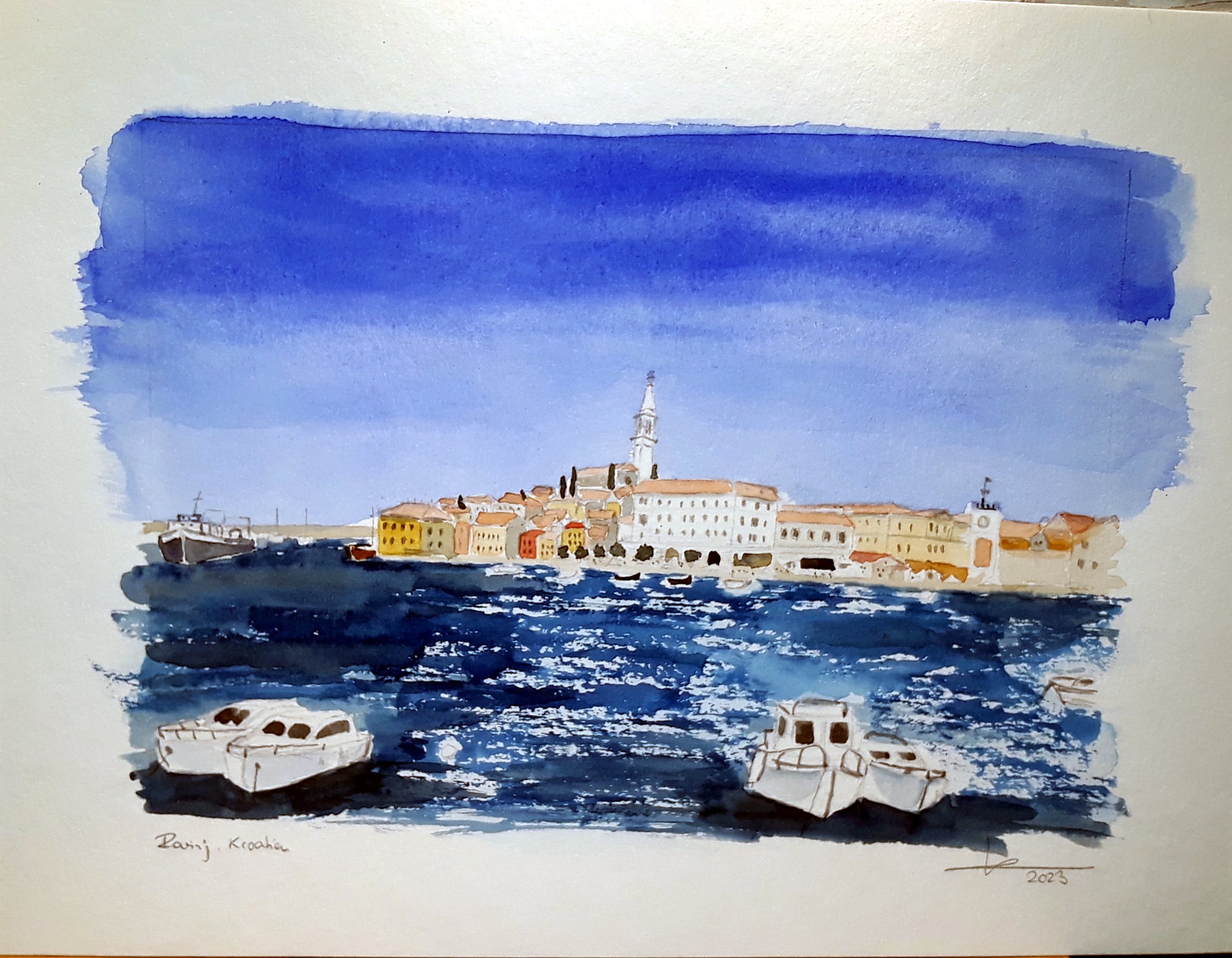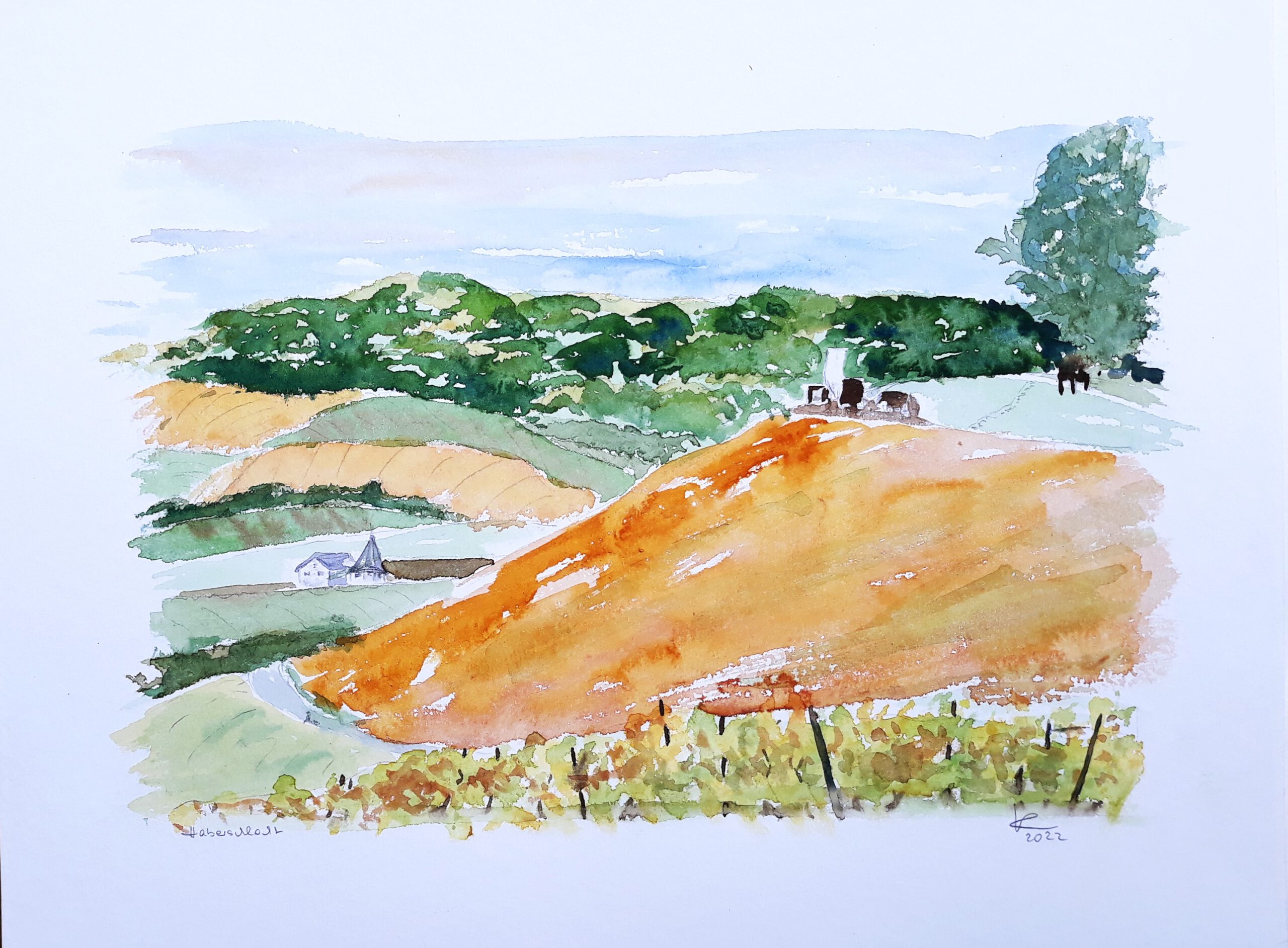 Aber immer mal wieder entstand ein Bild. Meist war es Öl auf Leinwand. Heute bevorzuge ich Aquarell und Papier. Nicht, weil es eine kleinere Fläche ist, sondern, weil das Wasser mit der Farbe immer für Überraschungen sorgt.“ – Katja Körner
