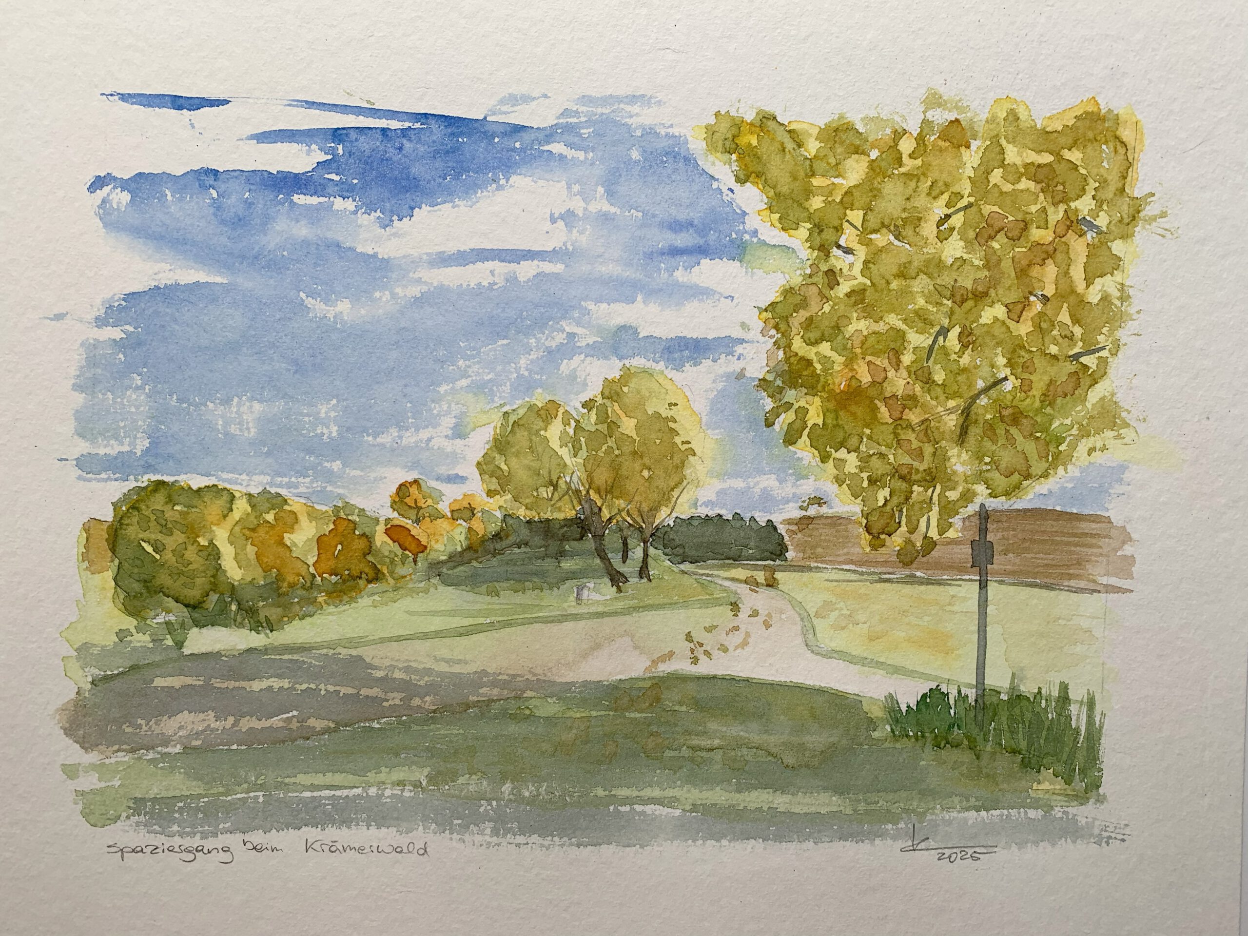 Aber immer mal wieder entstand ein Bild. Meist war es Öl auf Leinwand. Heute bevorzuge ich Aquarell und Papier. Nicht, weil es eine kleinere Fläche ist, sondern, weil das Wasser mit der Farbe immer für Überraschungen sorgt.“ – Katja Körner 2022