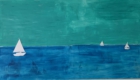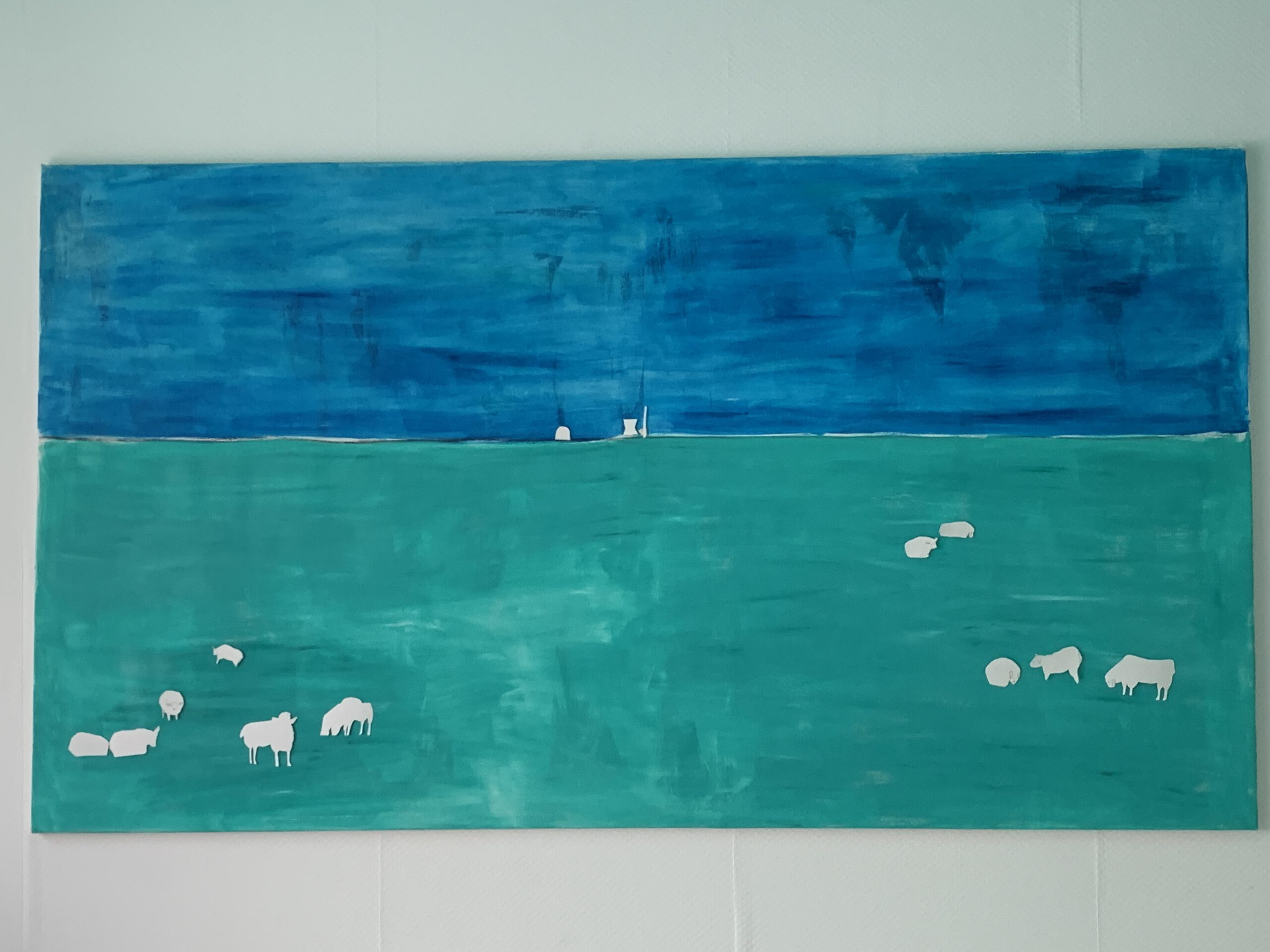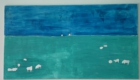 5. Ein Bild mit Mehrfachnutzen: einmal die friedlich grasende Landschaft mit Kernreaktor und andererseits das weite Meer mit Segelschiffen  100 x 180 Öl